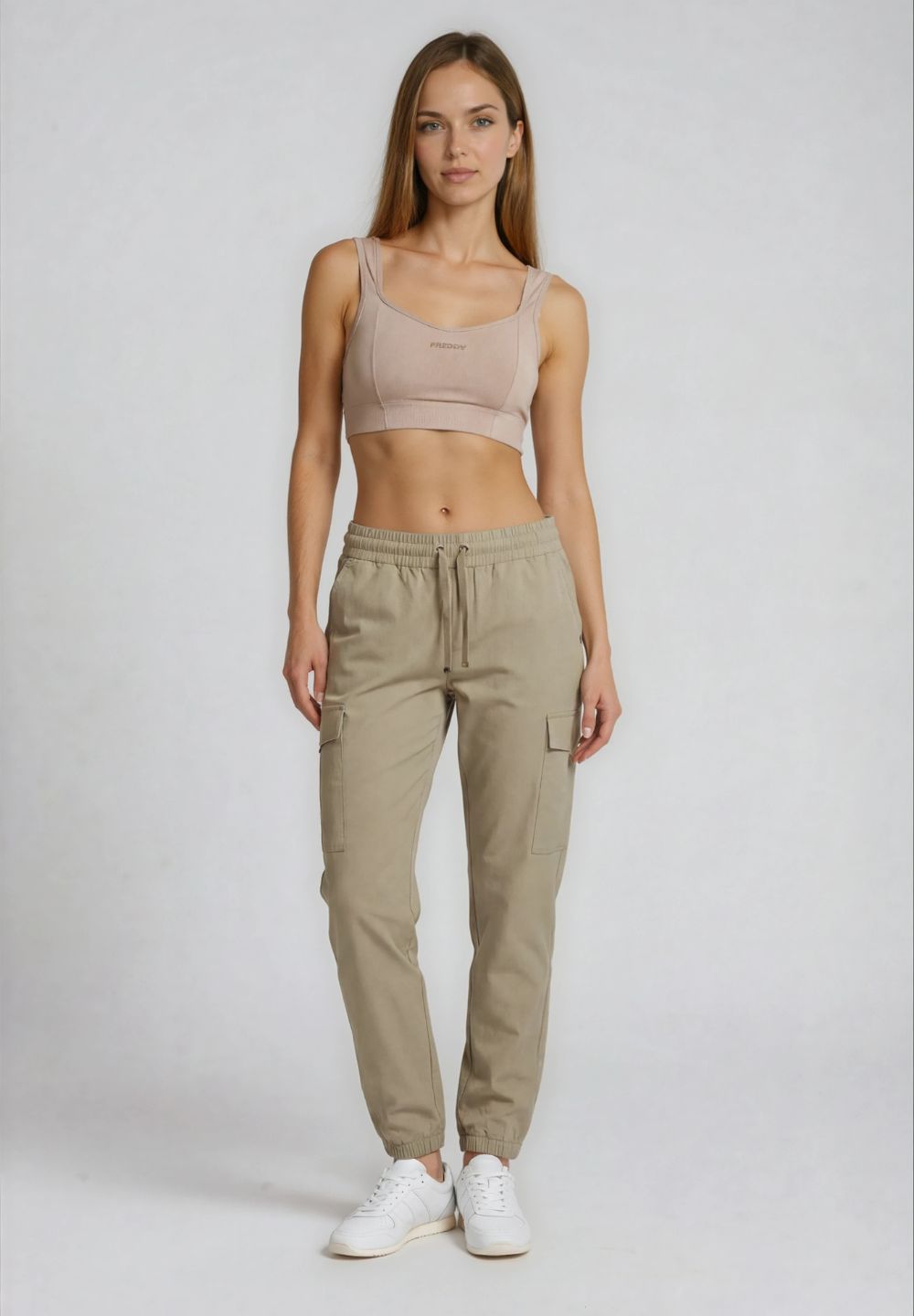 Wide leg trousers with FREDDY logoed drawstring - Milky Blue