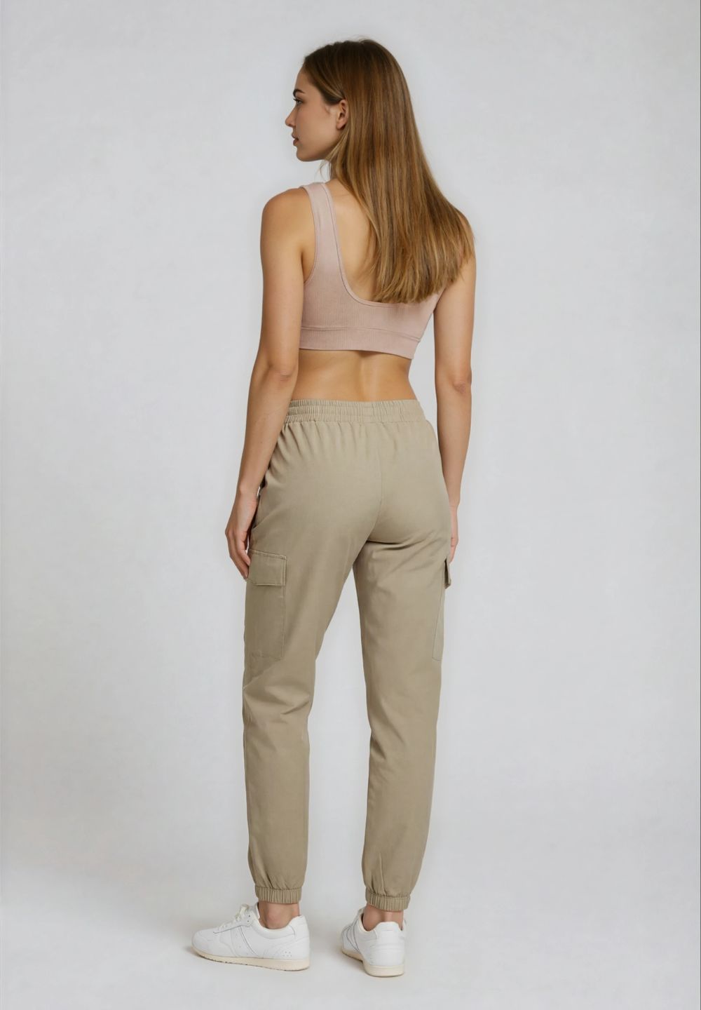 Stretch poplin cargo trousers - Abbey Stone Green