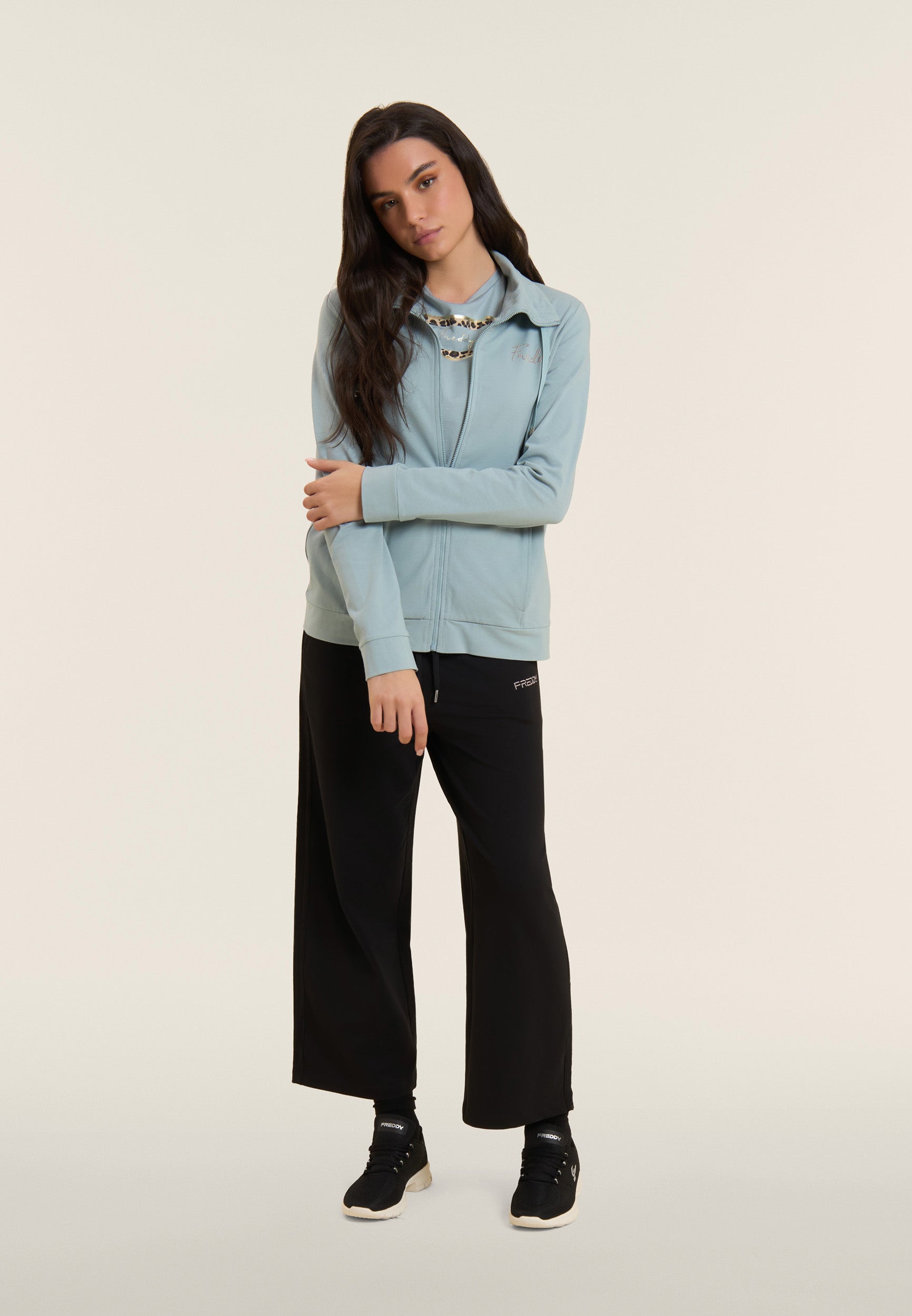 FREDDY straight-leg joggers with rhinestones - Black