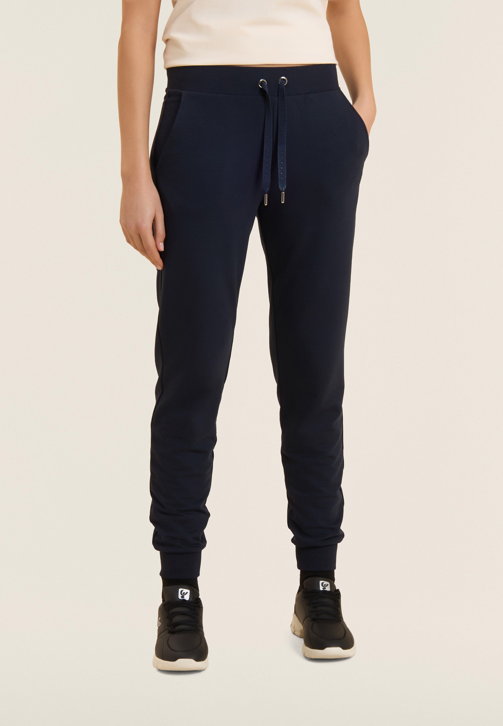 Athletic trousers with ribbed cuffs and rhinestones - Dark Sapphire Blue