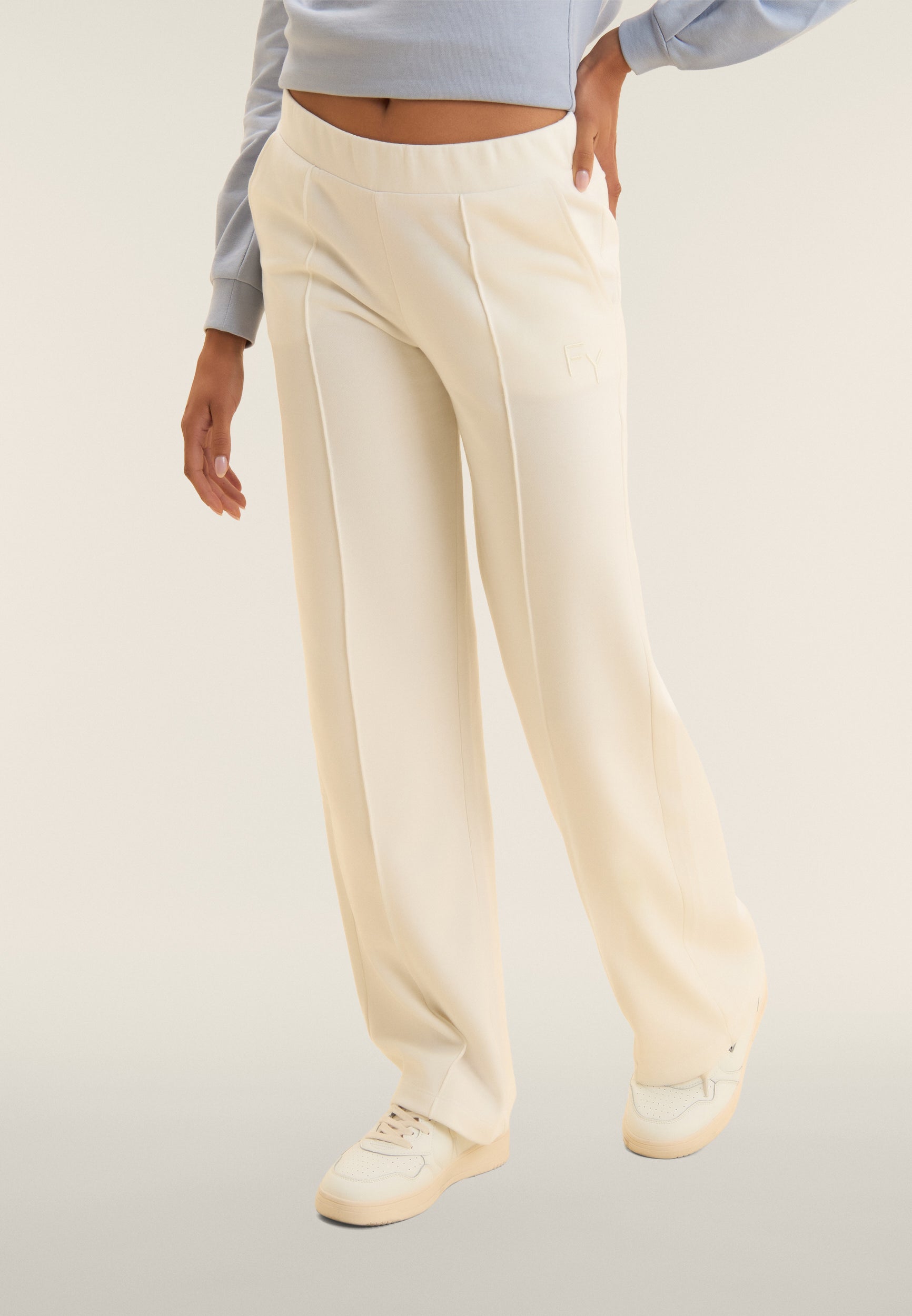 Wide-leg athletic trousers and embroidery logo - Egret White