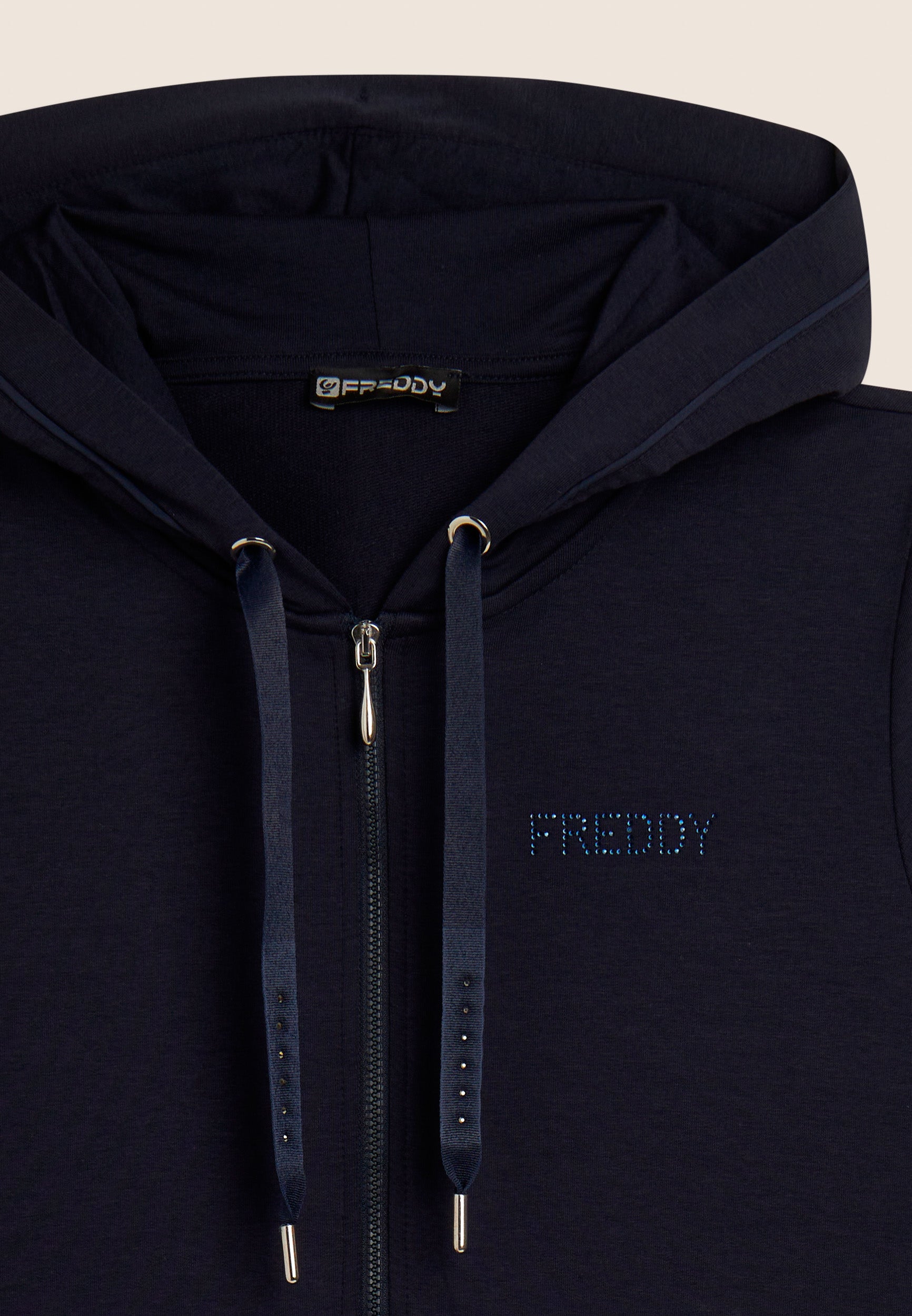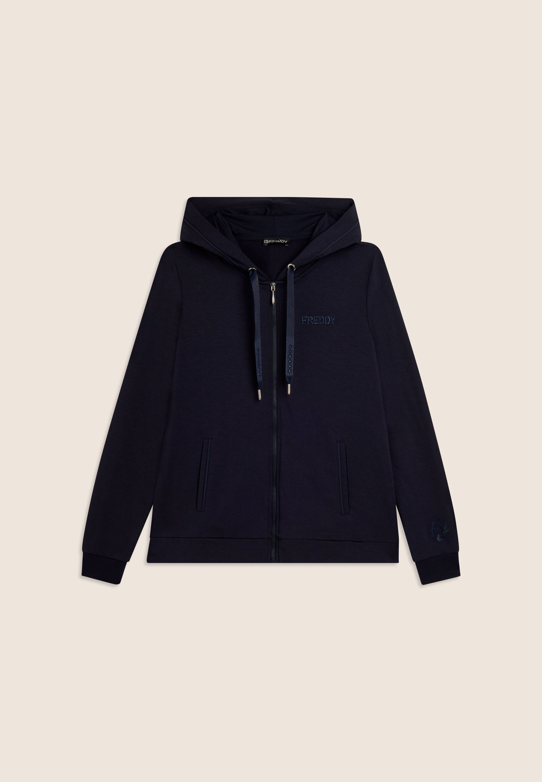 Zip hoodie with FREDDY logo in rhinestones - Dark Sapphire Blue