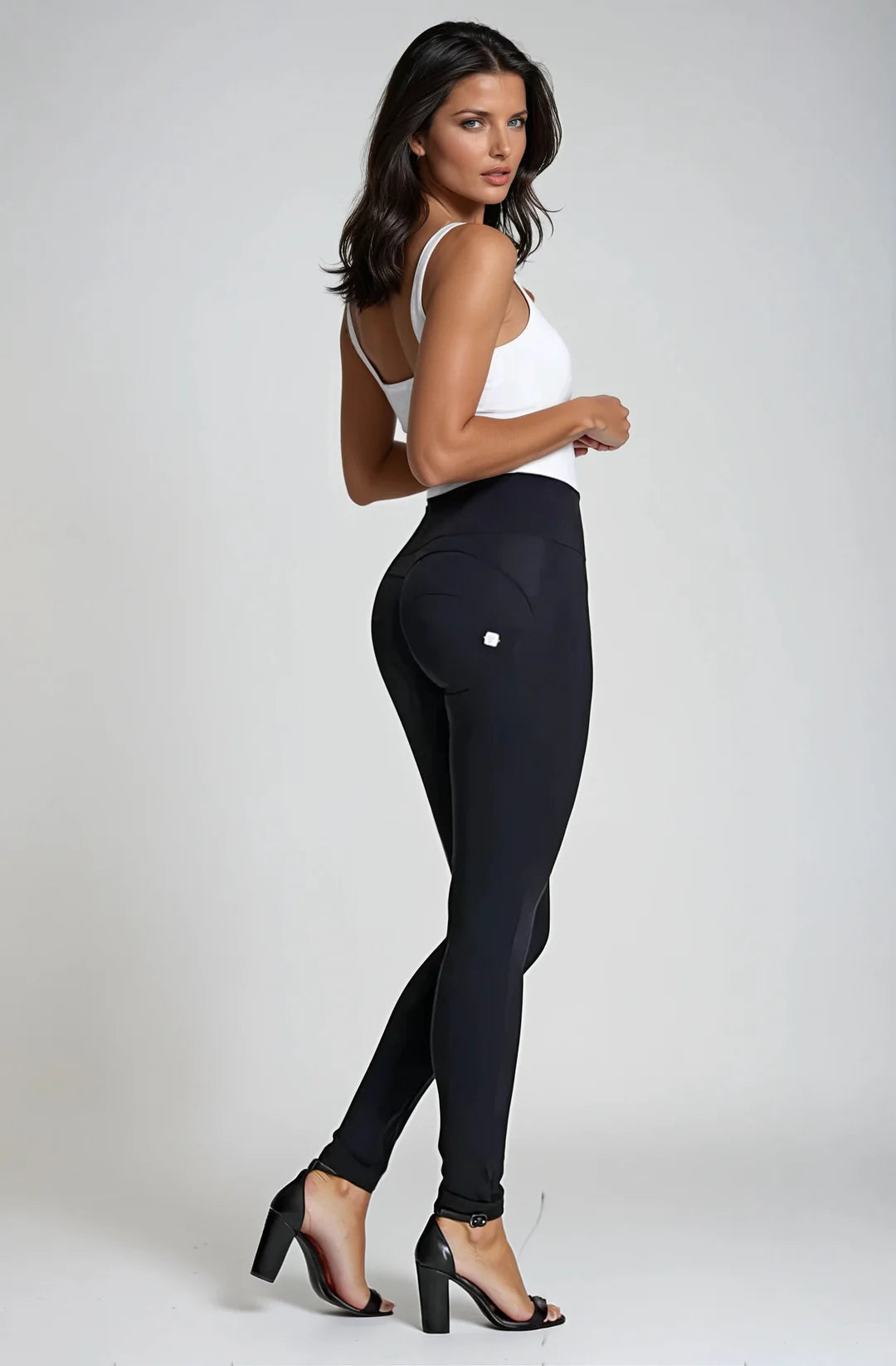 Experience the unique fit and feel of the WR.UP® Sport Pants in Black. This piece impresses with a sleek skinny fit that hugs your curves. Adding to that is a flattering high waist that offers gentle support. The look is completed by a timeless full length, perfect for any season. Crafted made from a soft organic cotton blend that feels great and supports sustainability and made from innovative DIWO® fabric that promotes quick drying, ideal for workouts. As part of the WR.UP® line, they feature patented technology designed to naturally enhance and sculpt your silhouette. Italian design that radiates confidence and style.