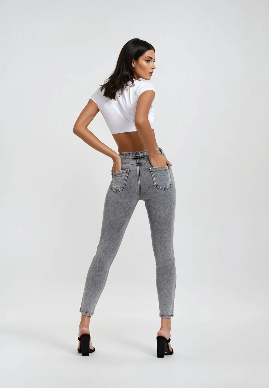 Experience the unique fit and feel of the NOW® Pants in Grey. It combines with a comfortable mid waist for everyday ease. Adding to that is a timeless full length, perfect for any season. The look is completed by a sleek skinny fit that hugs your curves. Crafted to offer the classic look of denim with the comfort of soft, flexible fabric. Belonging to the NOW® collection, these pants prioritize ultimate comfort and freedom, moving effortlessly with you. Pants that effortlessly blend comfort and fashionable looks.