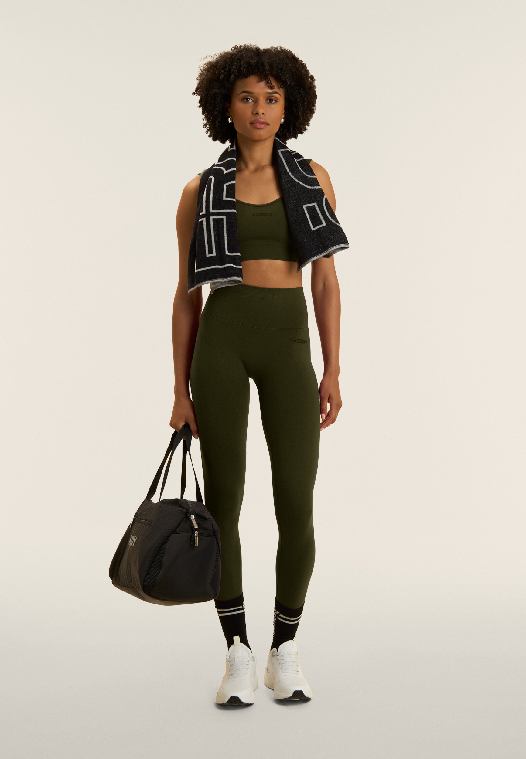 With its feminine and comfortable design, this light support sports top is perfect for yoga and low intensity activities. Sweetheart neckline at the front and square neckline at the back with regular shoulder straps. The nylon jersey performance fabric is soft, breathable and lightweight, with a small FREDDY contrasting logo on the front.