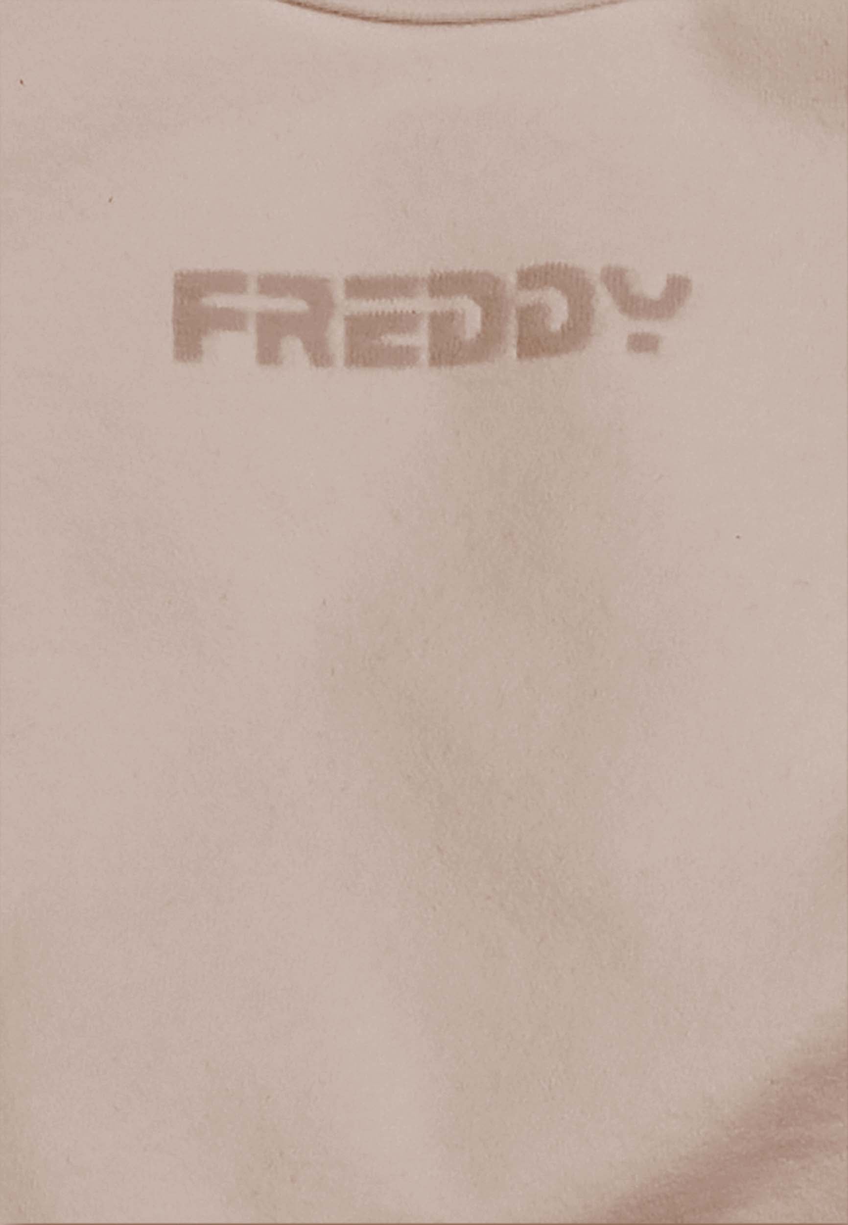 With its feminine and comfortable design, this light support sports top is perfect for yoga and low intensity activities. Sweetheart neckline at the front and square neckline at the back with regular shoulder straps. The nylon jersey performance fabric is soft, breathable and lightweight, with a small FREDDY contrasting logo on the front.