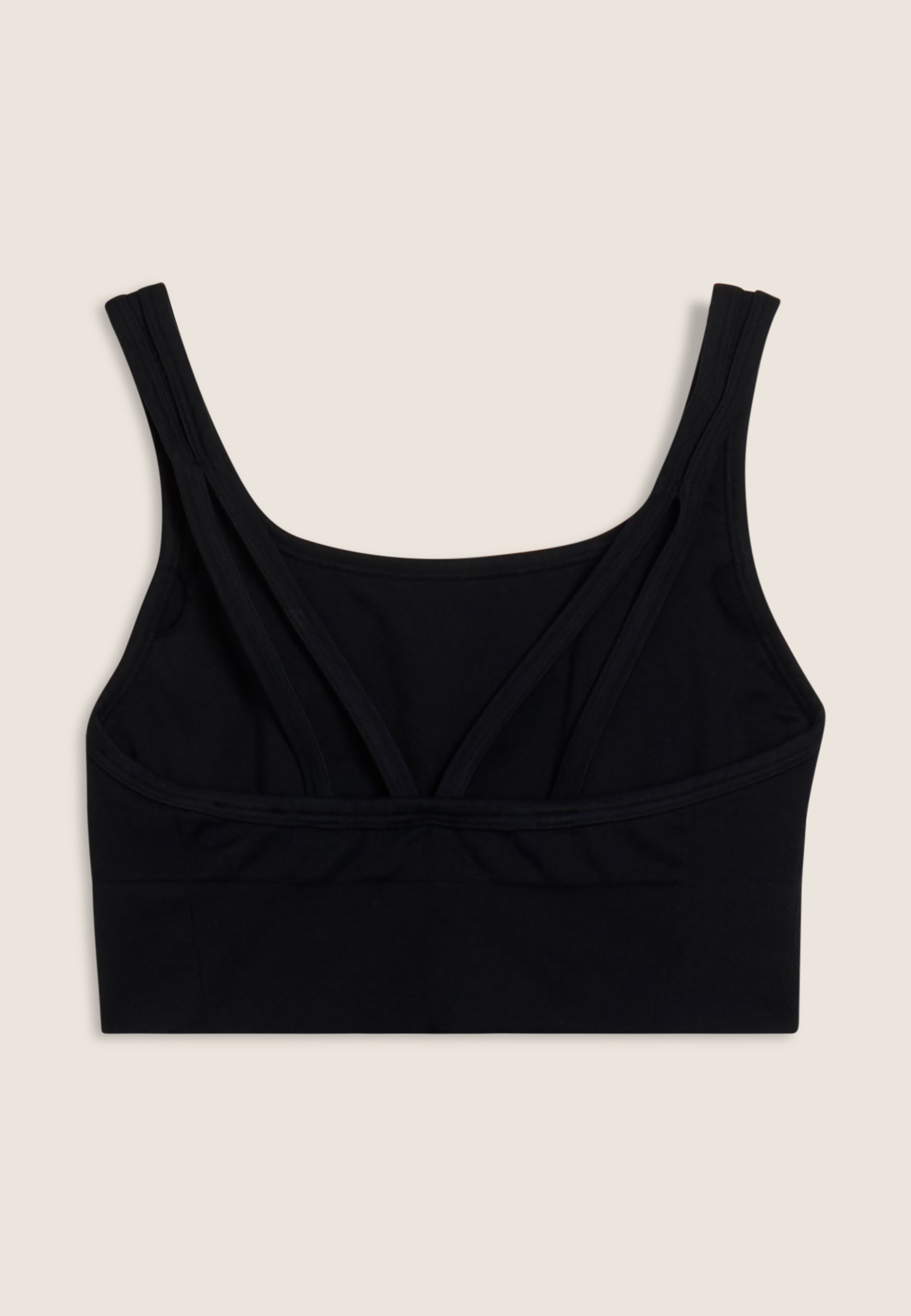 Medium support sports bra with removable moulded cups, ideal for daily training. The cut is designed to offer support and style: round neckline, regular shoulder straps crossed at the back, and side inserts in herringbone textured fabric. The nylon jersey fabric is breathable and durable.