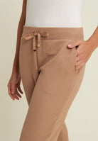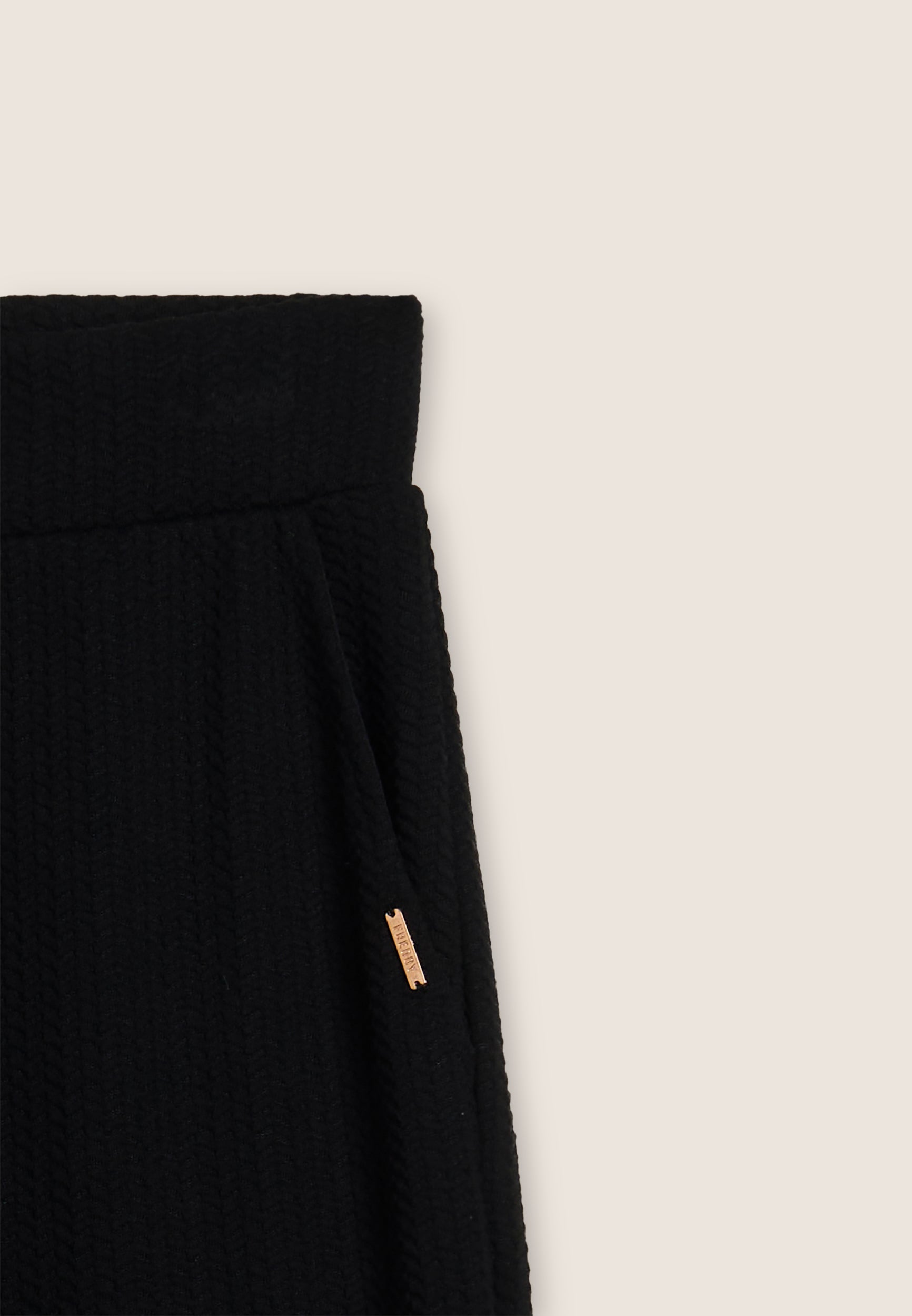Women's trousers with regular and comfortable fit, made entirely from double-layered performance fleece with sophisticated micro-braid texture. The regular waist has an adjustable drawstring for a customised fit. Straight bottom, comfortable and practical besom pockets, with FREDDY logo plaque applied discreetly to the edge of the left pocket.
