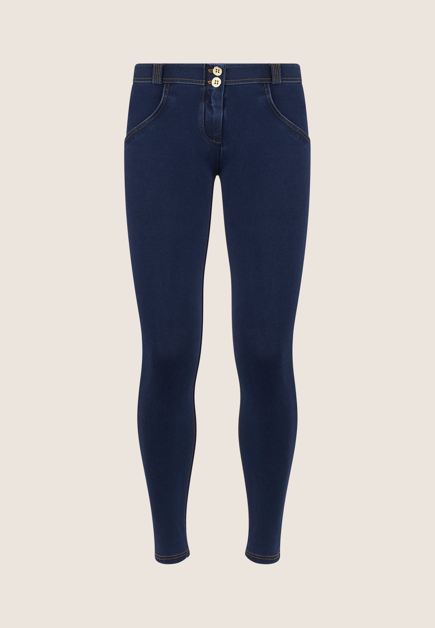 Experience the unique fit and feel of the WR.UP® Pants in Blue. They feature a sleek skinny fit that hugs your curves. Adding to that is a timeless full length, perfect for any season. The look is completed by a relaxed low waist for a casual, modern vibe. Crafted to offer the classic look of denim with the comfort of soft, flexible fabric. As part of the WR.UP® line, they feature patented technology designed to naturally enhance and sculpt your silhouette. Your go-to piece for days when you just want to feel great.