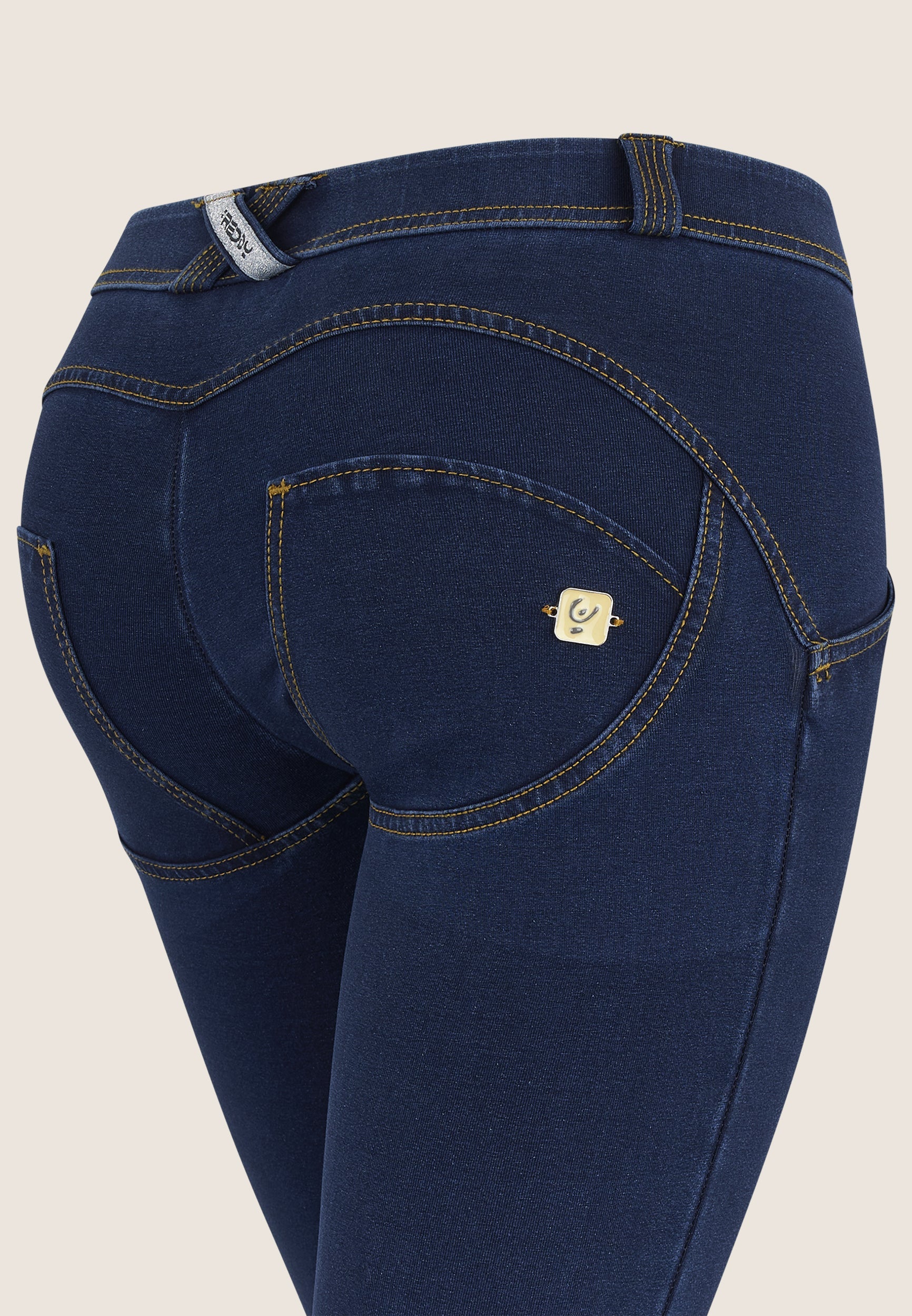Freddy WR.UP® Damen Push-Up Jeans - Low Waist Super Skinny - Indigoblau – Gelbe Nähte - J0Y