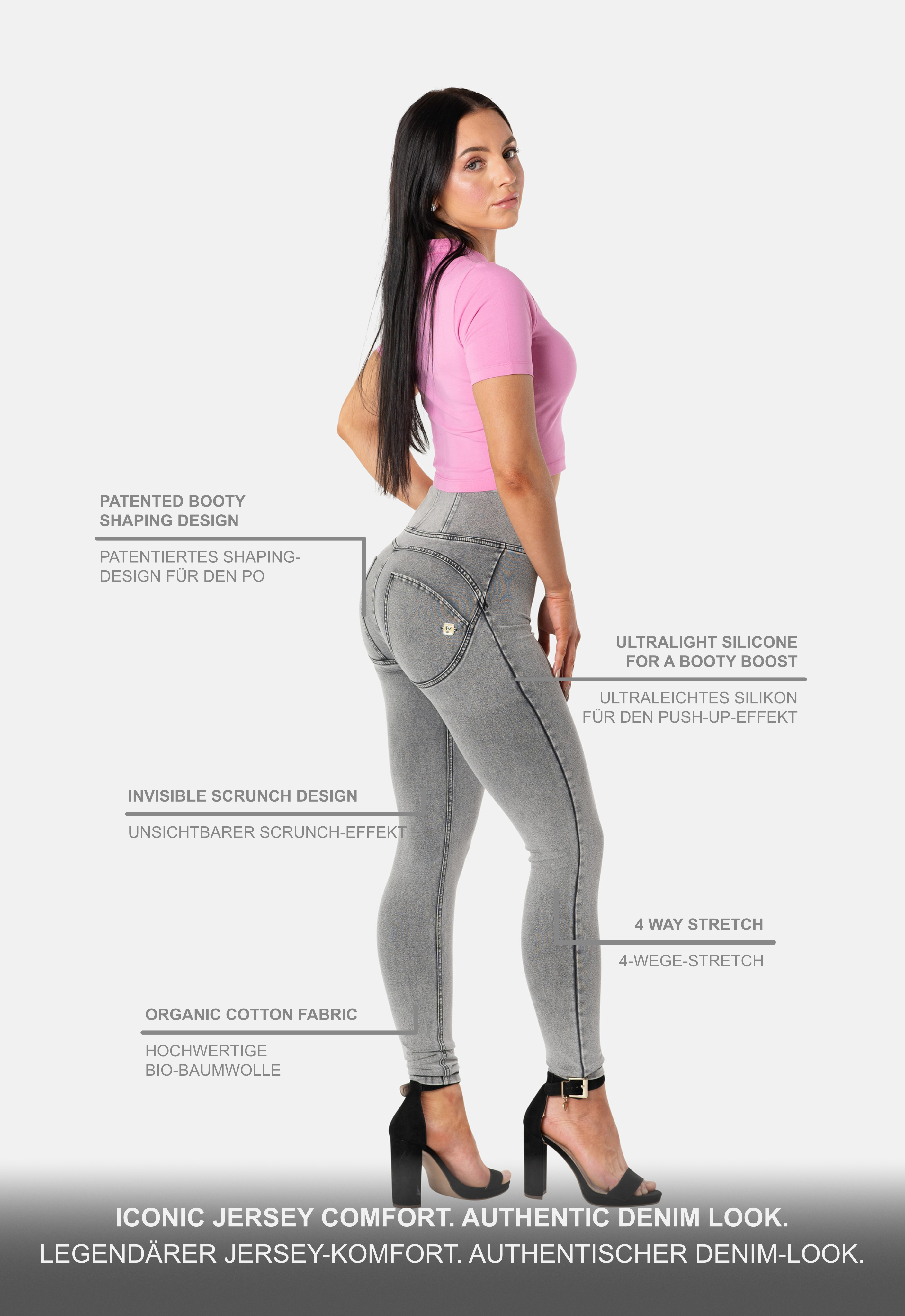 WR.UP® Pants in Grey: designed to flatter and move with you. They feature a sleek skinny fit that hugs your curves. Adding to that is a flattering high waist that offers gentle support. The look is completed by a timeless full length, perfect for any season. Crafted combining a timeless denim aesthetic with enhanced comfort and flexibility. As part of the WR.UP® line, they feature patented technology designed to naturally enhance and sculpt your silhouette. Perfect for countless occasions, from casual to chic.