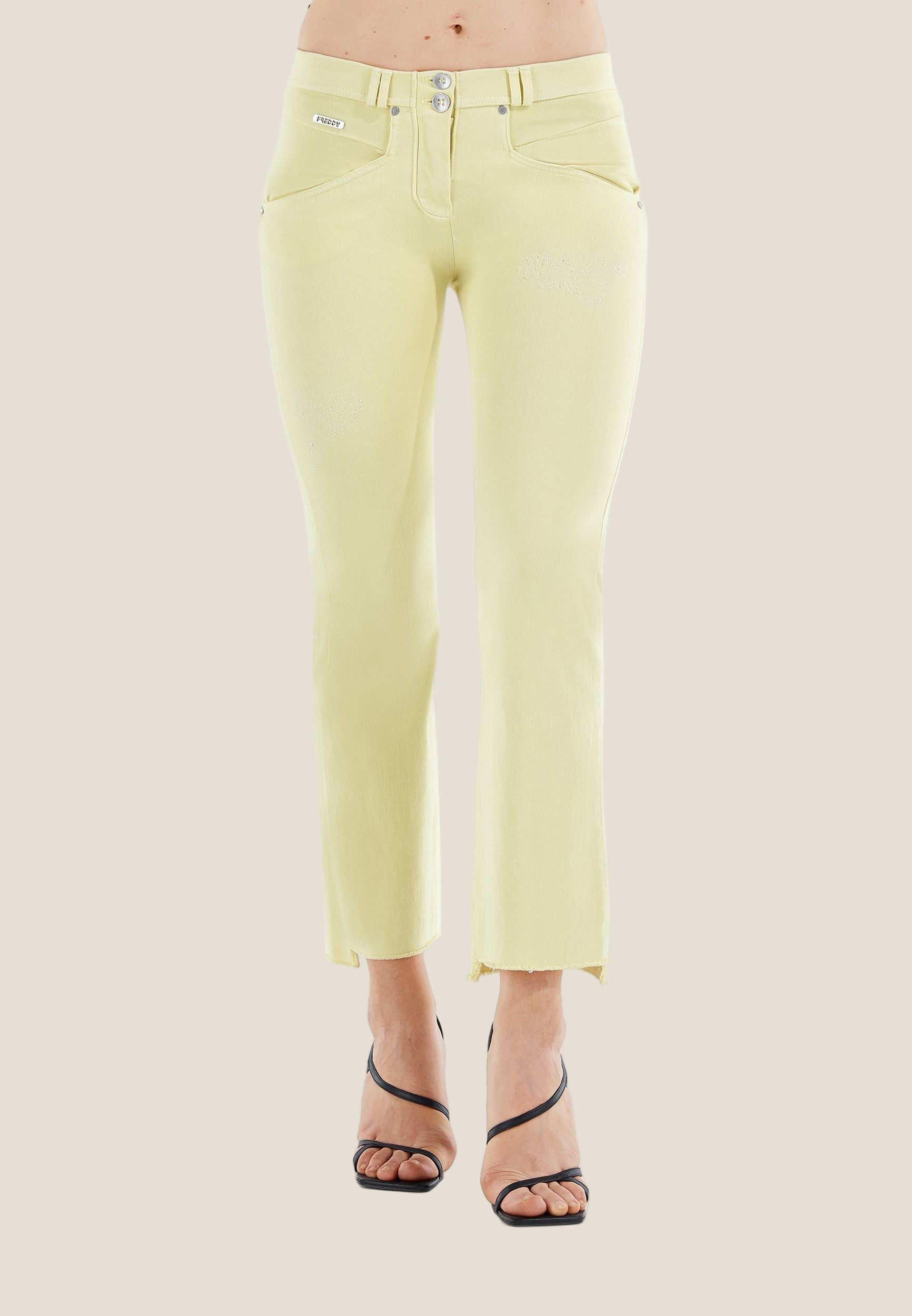 The WR.UP® Organic Pants in Yellow combine iconic Freddy style with exceptional comfort. This piece impresses with a modern 7/8 length that subtly highlights your ankles. Adding to that is a comfortable mid waist for everyday ease. Crafted with eco-conscious organic cotton for softness you can feel good about, combining a timeless denim aesthetic with enhanced comfort and flexibility, as well as featuring eco-friendly Tencel™ Lyocell known for its gentle touch and breathability. As part of the WR.UP® line, they feature patented technology designed to naturally enhance and sculpt your silhouette. Your go-to piece for days when you just want to feel great.