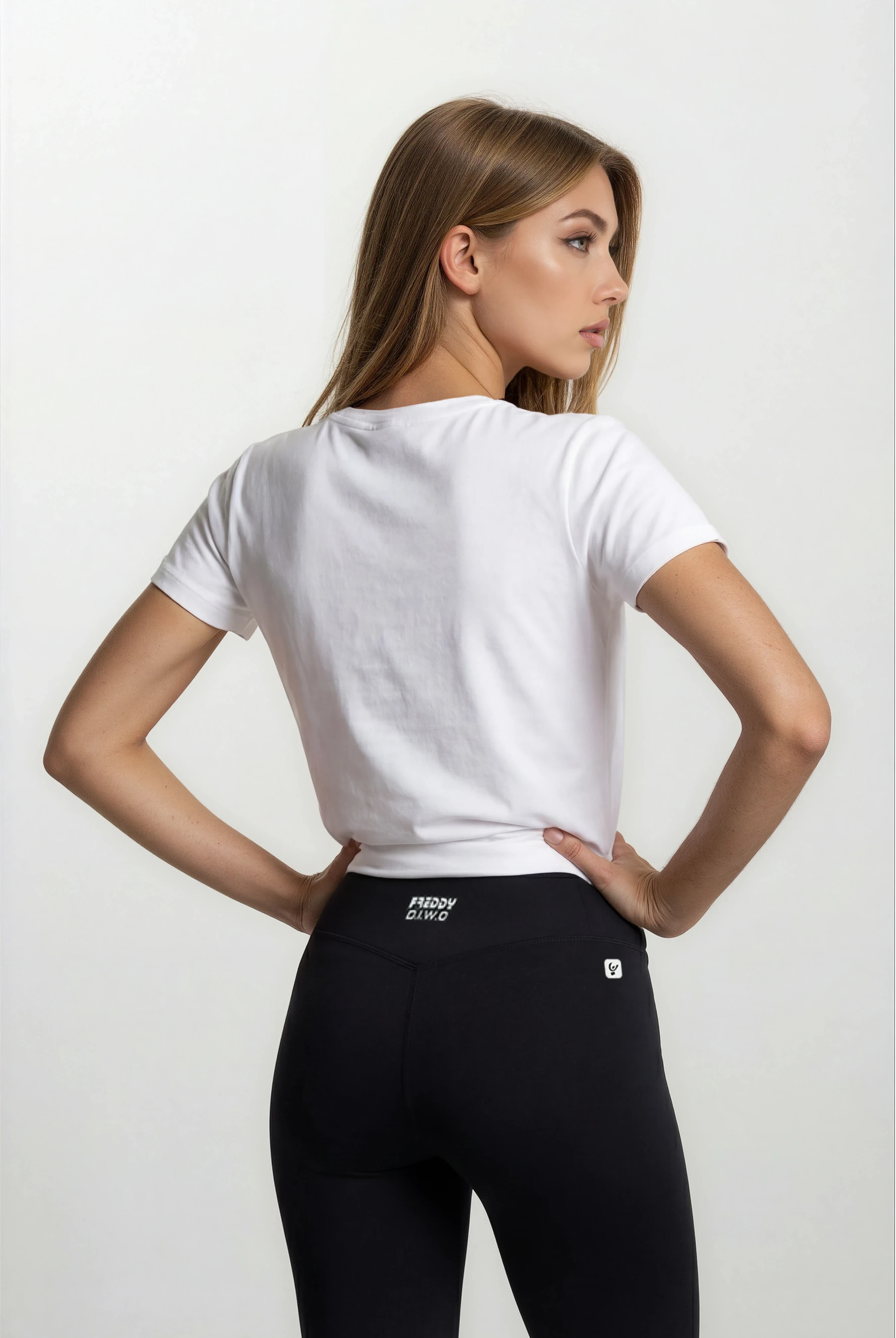 Die formenden Damen Sport-Leggings von Freddy bieten den berühmten WR.UP® Push-up-Effekt auch beim Training! Eine ultraleichte Silikonschicht unterhalb des Gesäßes stützt und hebt deinen Po an; deine natürlichen Kurven werden betont und dein Po wirkt runder. Der Bund aus Silikon garantiert einen perfekten Halt bei jeder Aktivität.