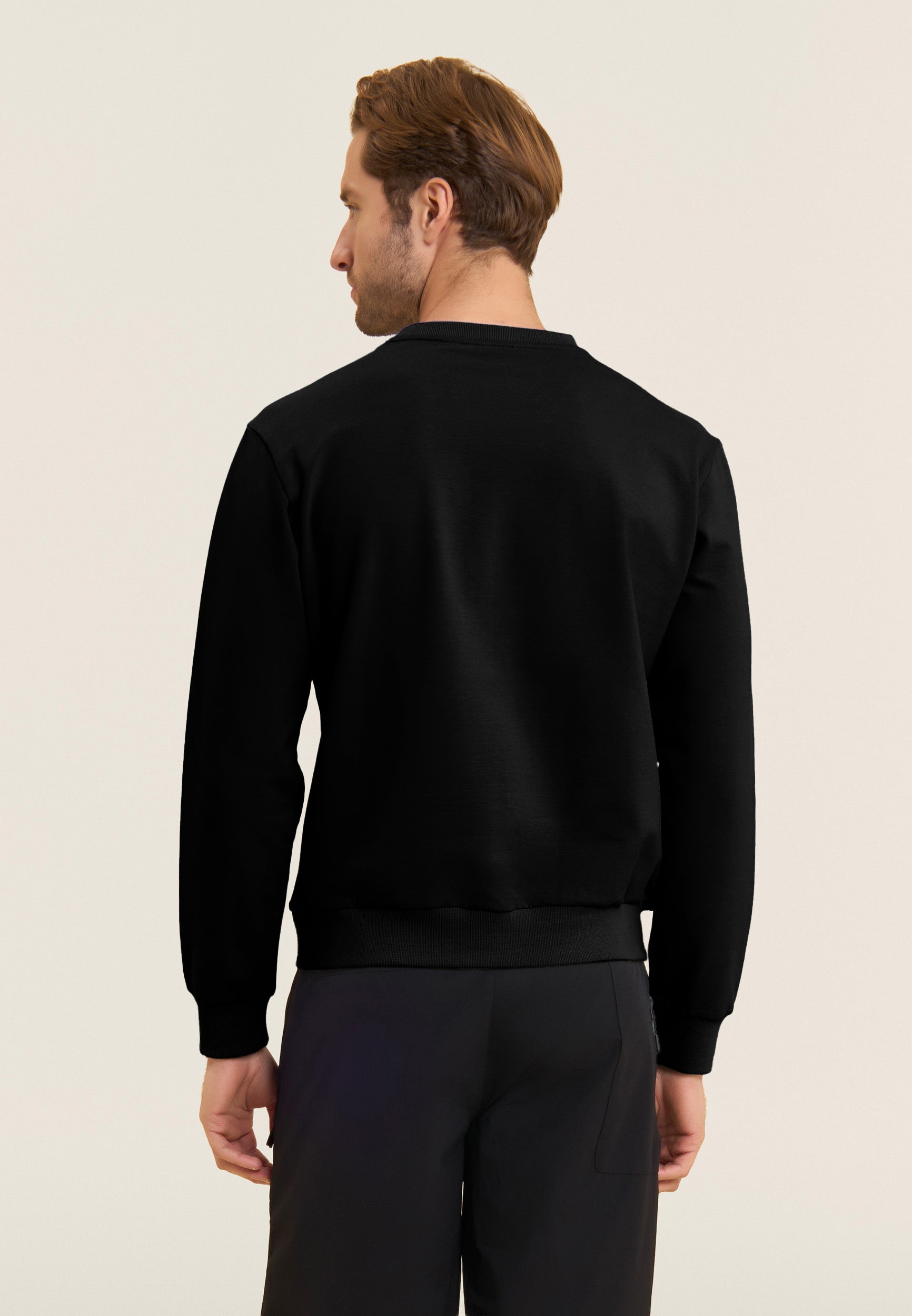 Crew neck sweatshirt in baby French terry with zip pocket - Black