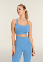 Medium support sports bra with removable moulded cups, ideal for daily training. The cut is designed to offer support and style: round neckline, regular shoulder straps crossed at the back, and side inserts in herringbone textured fabric. The nylon jersey fabric is breathable and durable.