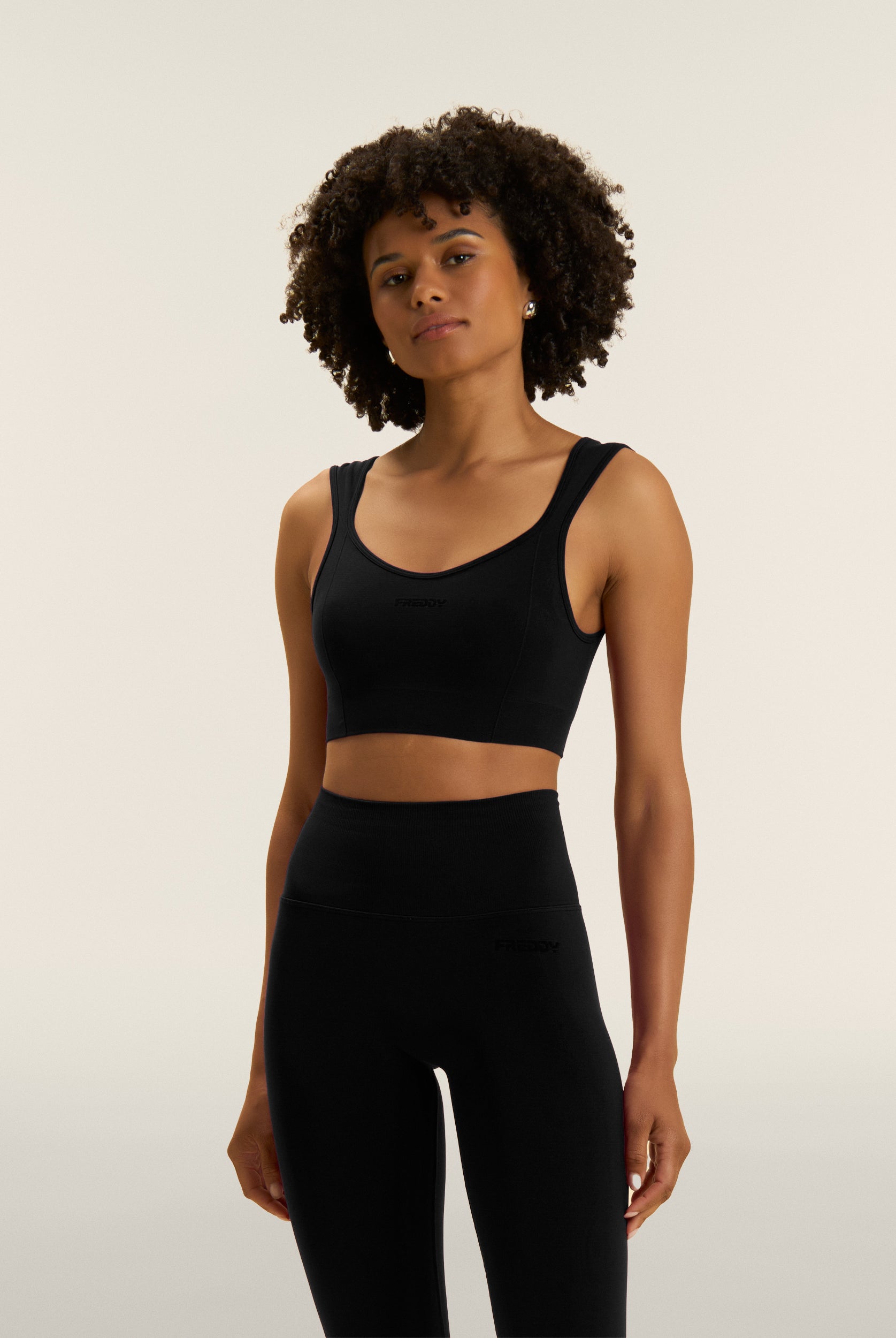 100% Made in Italy ist unsere Kollektion mit ökologischen und nachhaltigen Produkten, die vollständig in Italien entwickelt, designed und produziert werden. Der Kern der Kollektion ist die ökologische Wirkung und das Ziel, einen kleineren ökologischen Fußabdruck zu lassen. Für die 100% Made in Italy Kollektion wählt Freddy Stoffe von Brugnoli™. Diese basieren auf der Br4™-Technologie, bei deren Entwicklung das Augenmerk auf einem ökologischen und nachhaltigen Produktionsprozess liegt. Das 100% biobasierte Polyamid (EVO von Fulgar®) besteht aus Rizinusöl. Das Resultat ist BIO D.I.W.O.®: leichtes, blickdichtes, schnell getrocknetes, thermoregulierendes und nachhaltiges Material. Aus diesem revolutionären Stoff besteht für Yoga entworfene Kleidung, in der du eins mit deinen Körperbewegungen bist und dich flexibel und selbstbewusst fühlst.