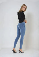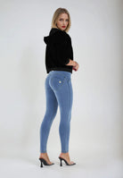 Freddy WR.UP® damskie jeansy push-up - regularna talia, skinny - jasnoniebieskie - żółte szwy