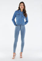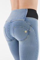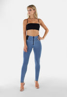 Spodnie WR.UP® w kolorze niebieskim: zaprojektowane, aby podkreślać sylwetkę i poruszać się razem z Tobą. Ten model imponuje smukłym, obcisłym krojem, który otula Twoje krągłości. Dodatkowo posiada pochlebny, wysoki stan, który oferuje delikatne wsparcie. Całość dopełnia ponadczasowa długość pełna, idealna na każdą porę roku. Wykonane z połączenia ponadczasowej estetyki denimu z ulepszonym komfortem i elastycznością. Jako część linii WR.UP® posiadają opatentowaną technologię zaprojektowaną, aby naturalnie podkreślać i modelować sylwetkę. Idealne na niezliczone okazje, od casualowych po eleganckie.