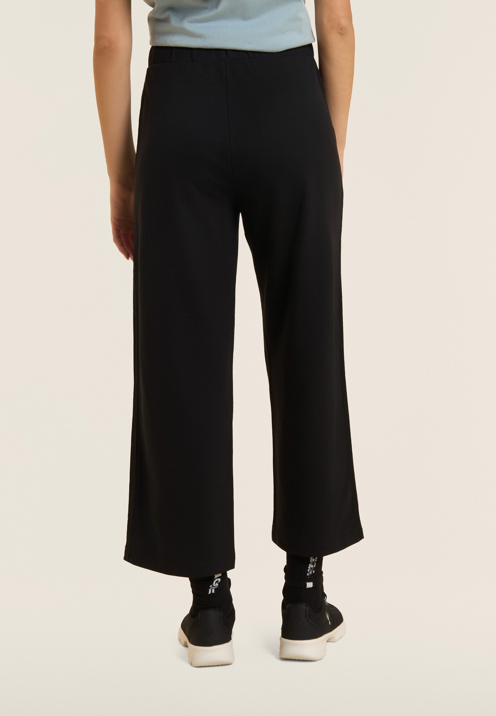 Cropped comfort wide leg athletic trousers - Black