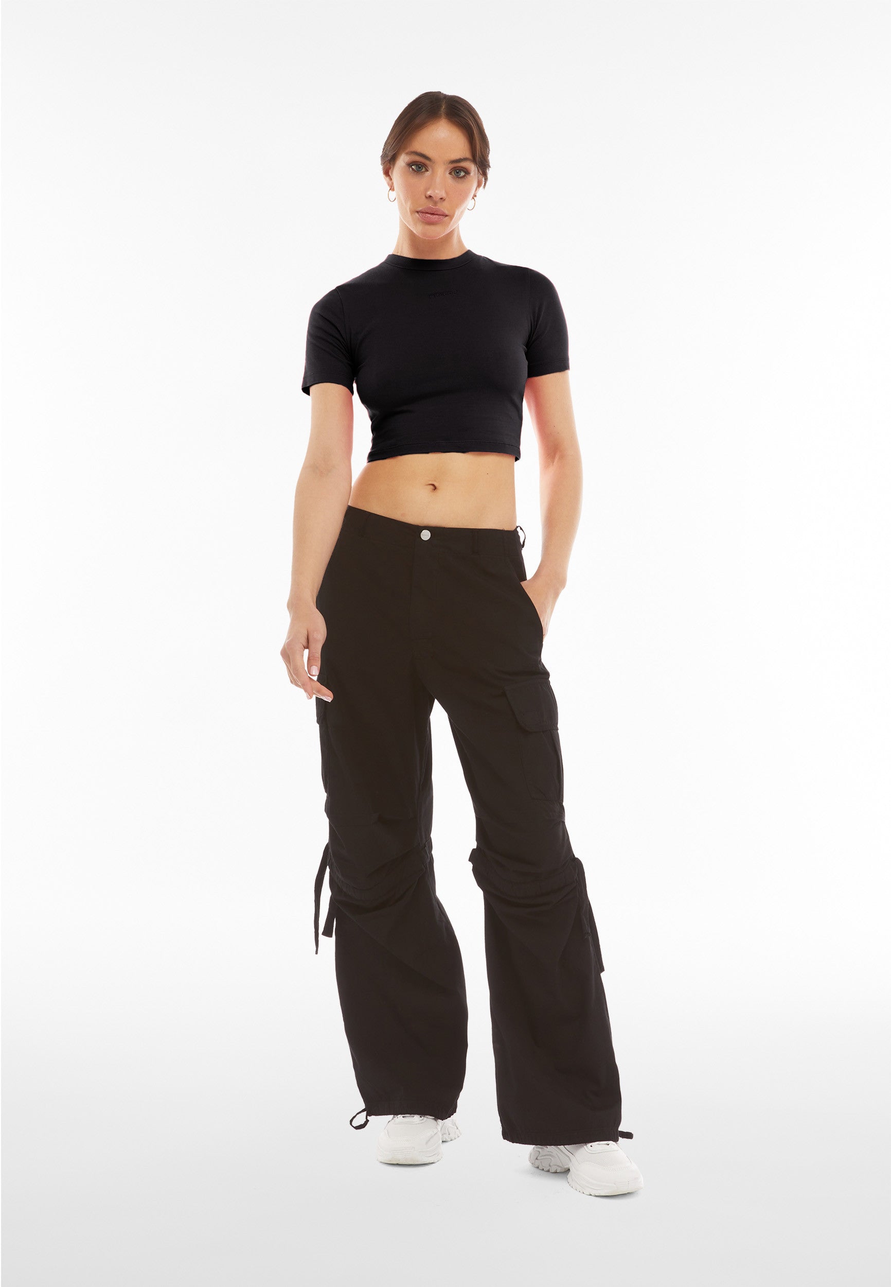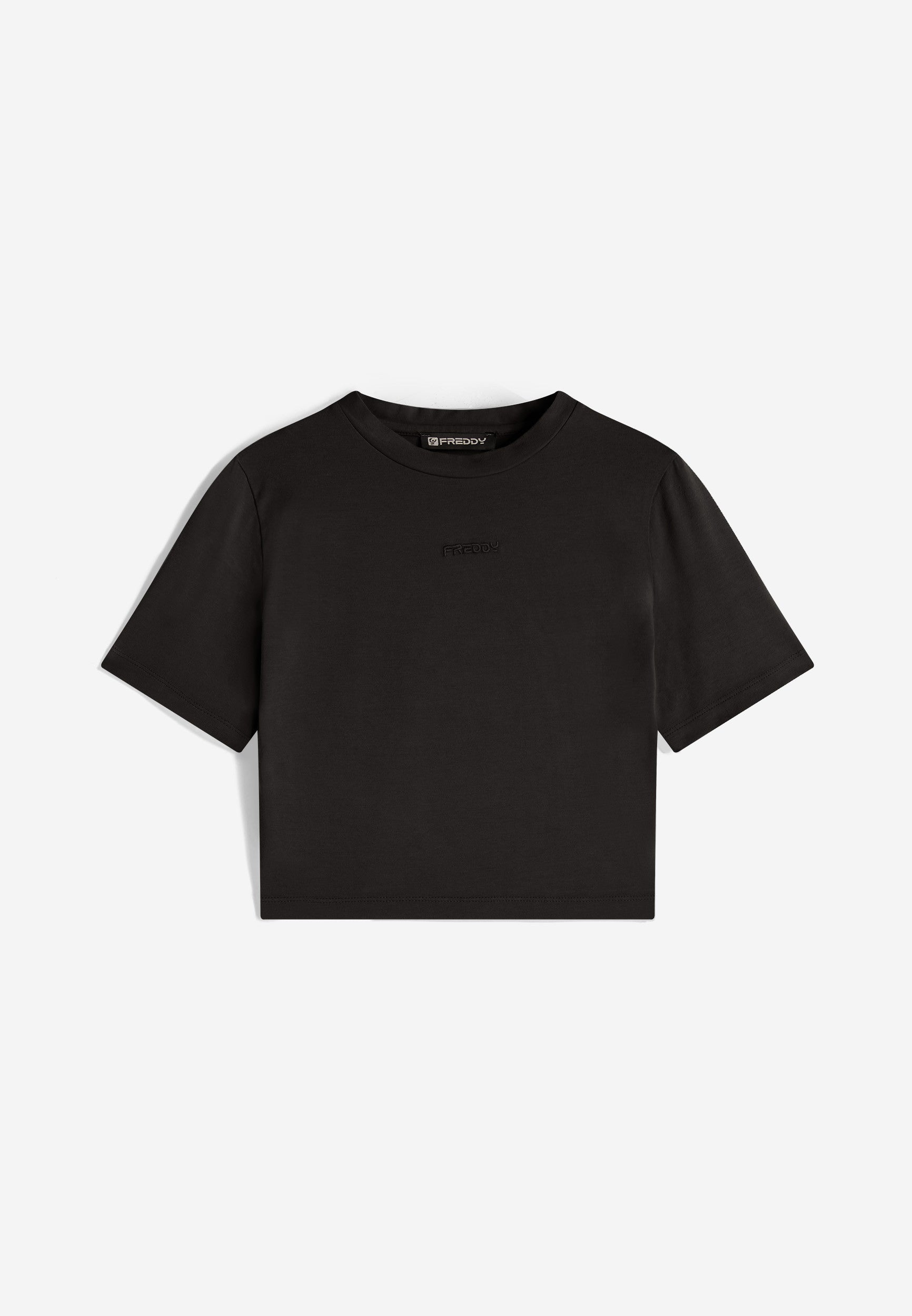 Freddy Slim-Fit Damen Crop Top - Garment-Dyed - Schwarz
