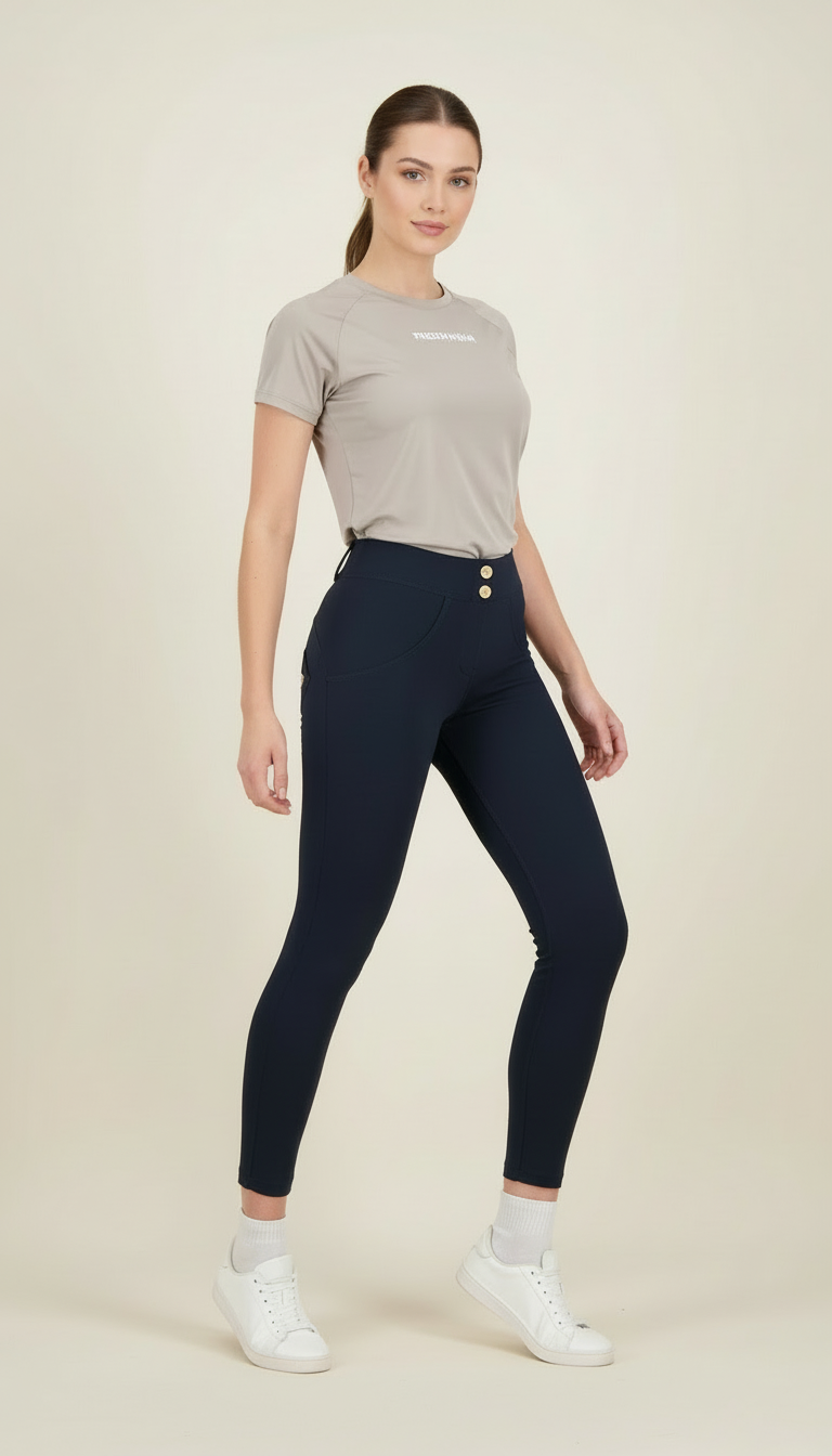 Regular Waist oder Regular Rise ist die klassische, normale Leibhöhe; die Hosen sitzen bequem an deiner Taille. Im Unterschied zu unseren Low-Waist-Hosen ist der Bund ca. 3 cm höher. Die normale Leibhöhe steht fast jeder Frau gut, und lässt sich mit allen Oberteilen kombinieren. Regular Waist ist die beliebteste und häufigste Bundhöhe. Wenn du klein und zierlich bist, lässt du deine Beine mit einer Regular-Waist-Jeans mit schmalen Hosenbeinen optisch verlängern.