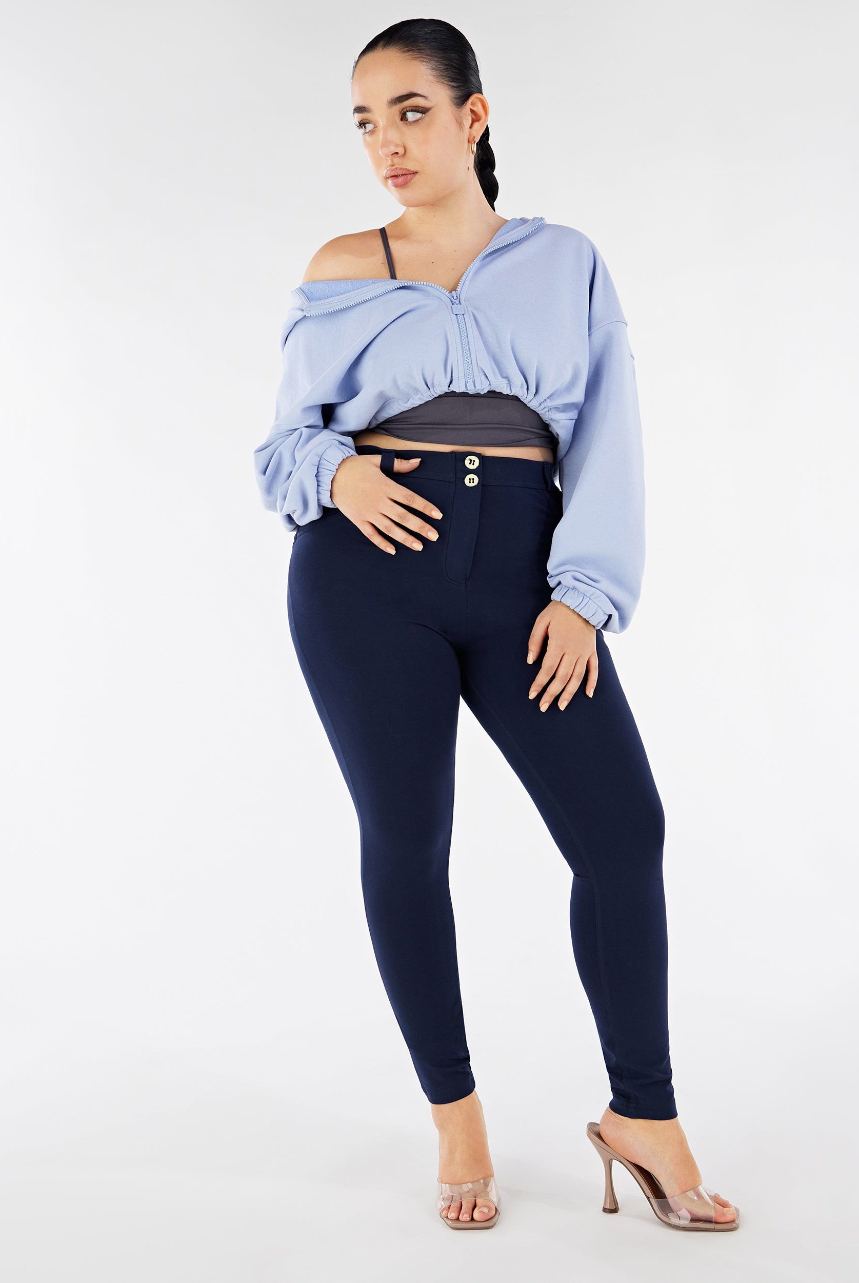 Hosen in Denim-Optik kombinieren den Stil von Push up Jeans mit dem Komfort von Leggings. Unsere Denims sitzen wirklich wie eine zweite Haut und betonen dabei deine natürlichen Kurven. Obwohl diese Jeggings wie echte Jeans aussehen, sind sie extrem elastisch und genauso bequem wie deine Lieblingsleggings. Dank des Silikonbundes an der Taille rutscht die Hose nicht, und du brauchst keinen Gürtel. Eine Jeanshose ist eine echte Alleskönnerin, die du immer und überall tragen kannst. Wir bieten unsere Denims in zahlreichen Farben und mit unterschiedlichen Details, so dass du genau den perfekten Style für dich findest. Ob in voller Beinlänge oder Knöchellänge, mit hoher oder niedriger Leibhöhe, Freddys sitzen immer perfekt!