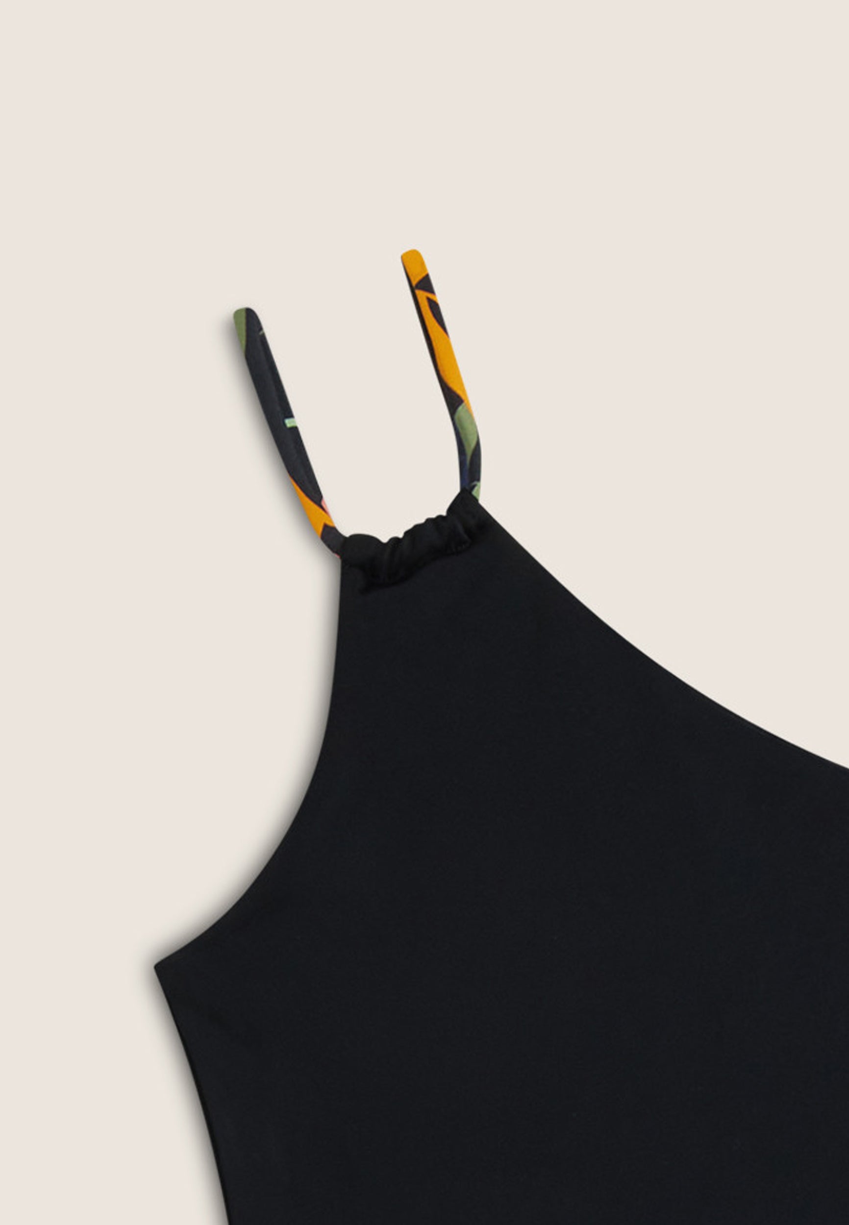 Ein-Schulter Badeanzug mit Aufdruck - BLACK